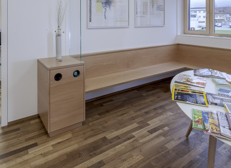 Für uns besteht kein Zweifel: Die Einrichtung prägt die Atmosphäre in einer Arztpraxis entscheidend mit. Bei der Planung und Fertigung der Ordinationsmöbel überlässt unsere Tischlerei daher nichts dem Zufall.